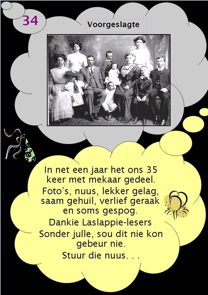 Ek hoop die LASLAPPIE kan vir ewig aanhou.  Dit sal   afhang van julle almal se bydraes wat moet instroom elke week.